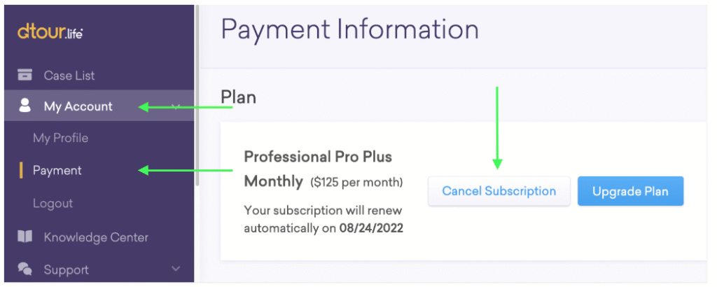 Click “Cancel Subscription” next to your billing plan.
